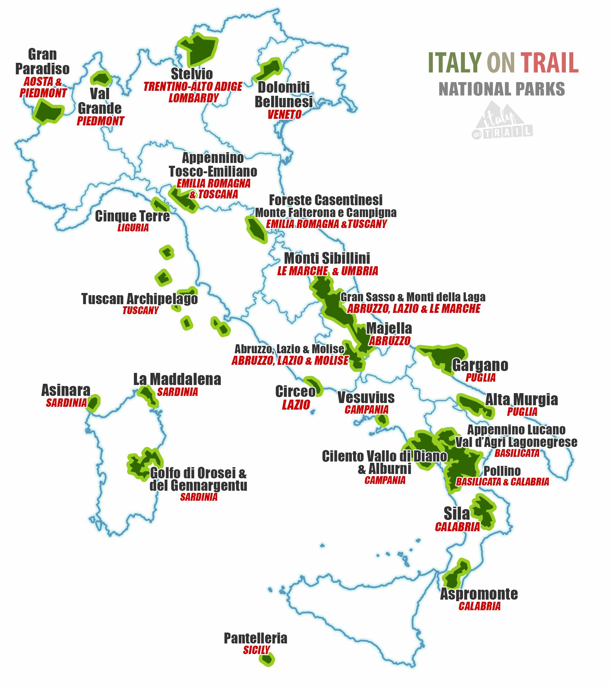 الدولوميت الإيطالية هي واحدة من أجمل الحدائق الوطنية في إيطاليا التي تقع داخل الشمال الشرقي. الحديقة هي موطن لمجموعة من سلاسل الجبال بما في ذلك مونتي ديل سول وتاليفينا مجموعة كما ذكر في خريطة حديقة إيطاليا. تمتد حديقة ستيلفيو الوطنية من جبال الألب في شمال إيطاليا وهي موطن للوديان العميقة والتلال المهيبة والبحيرات الواضحة وضوح الشمس. يقع منتزه غارغانو الوطني في جنوب إيطاليا بالقرب من مدينة بوليا الخلابة. وهي موطن لأشجار الحمضيات العطرة والبحر الصافي وضوح الشمس والجبال المتدحرجة التي تنتشر فيها أشجار الزيتون. تم إدراج حديقة سينك تير الوطنية كموقع للتراث العالمي لليونسكو في عام 1997 ، وهي واحدة من الحدائق الوطنية الرائعة تمامًا في إيطاليا التي حصلت على بعض المدن الشهيرة جدًا أيضًا.